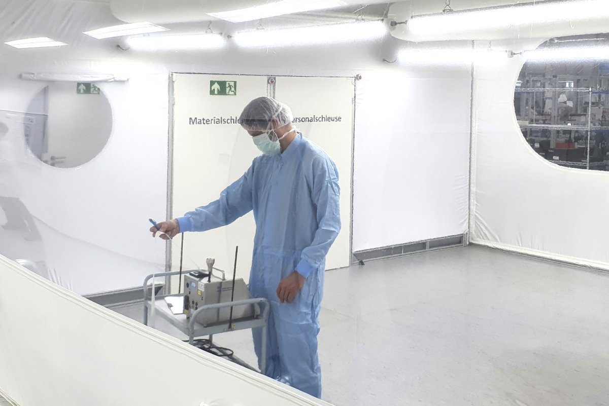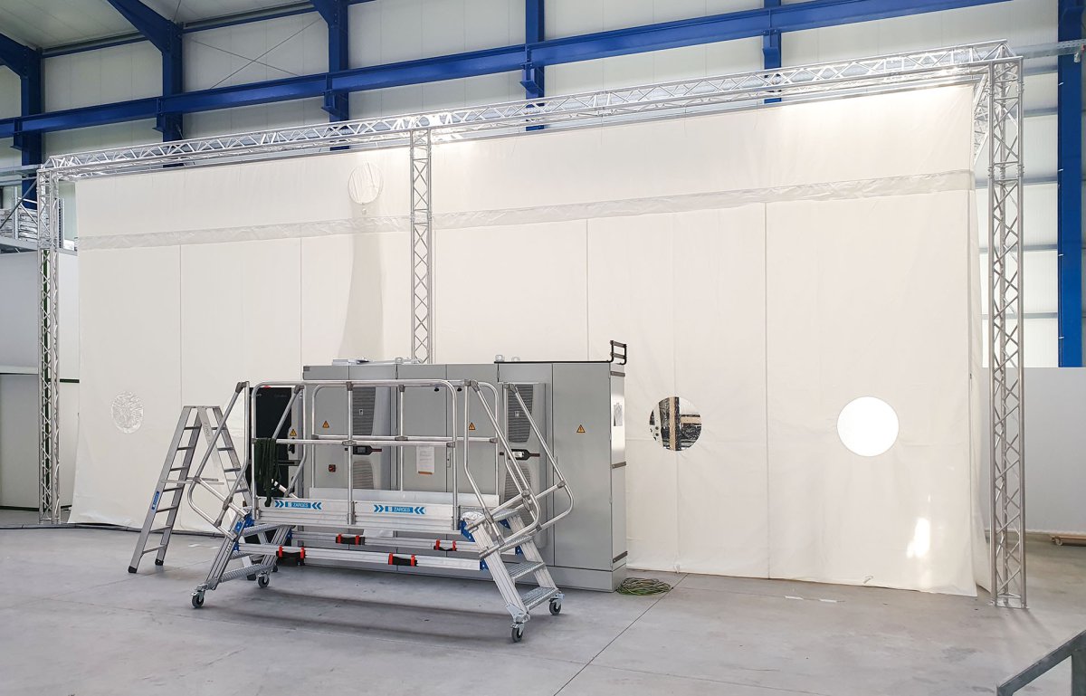 Unser Grundgedanke besteht da drin, mit modernsten Leichtbauelementen aus High-Tech-Materialien und Stoff zu arbeiten, statt mit schweren Platten, Glas und Beton. Aus federleichten Stoffwänden mit stabile Außengestellen und effizienten Lüftungen bauen wir Reinräume, die ihresgleichen suchen.